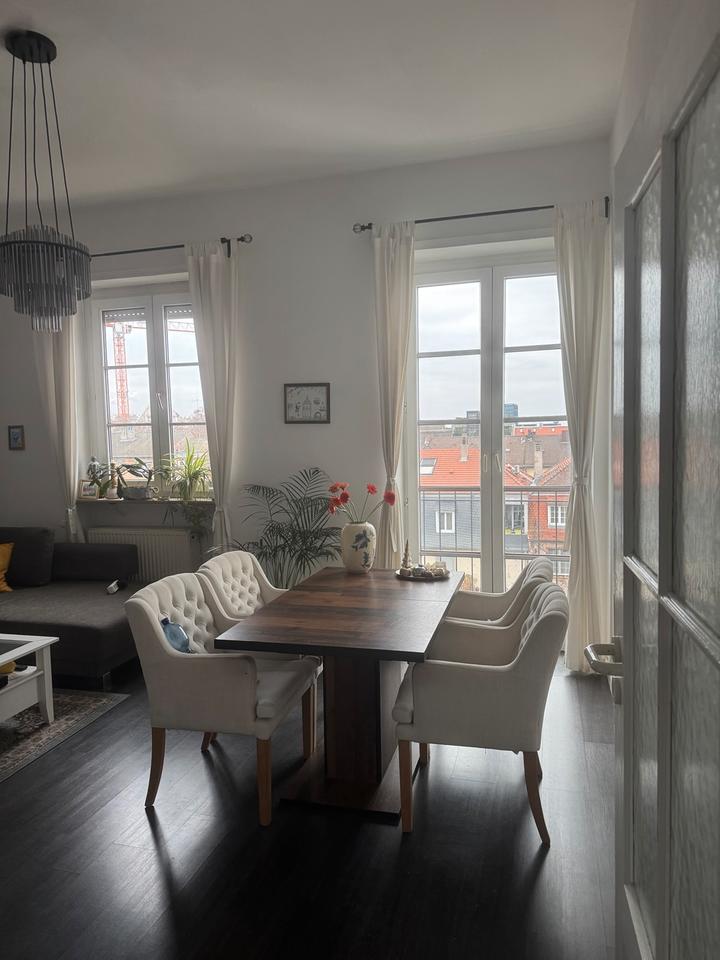 Die sehr helle Wohnung mit zwei französischen Balkonen mit ca. 75 m² Wohnfläche befindet sich in zentraler Lage in der Augustaanlage im beliebten Stadtteil Schwetzingerstadt in Mannheim.